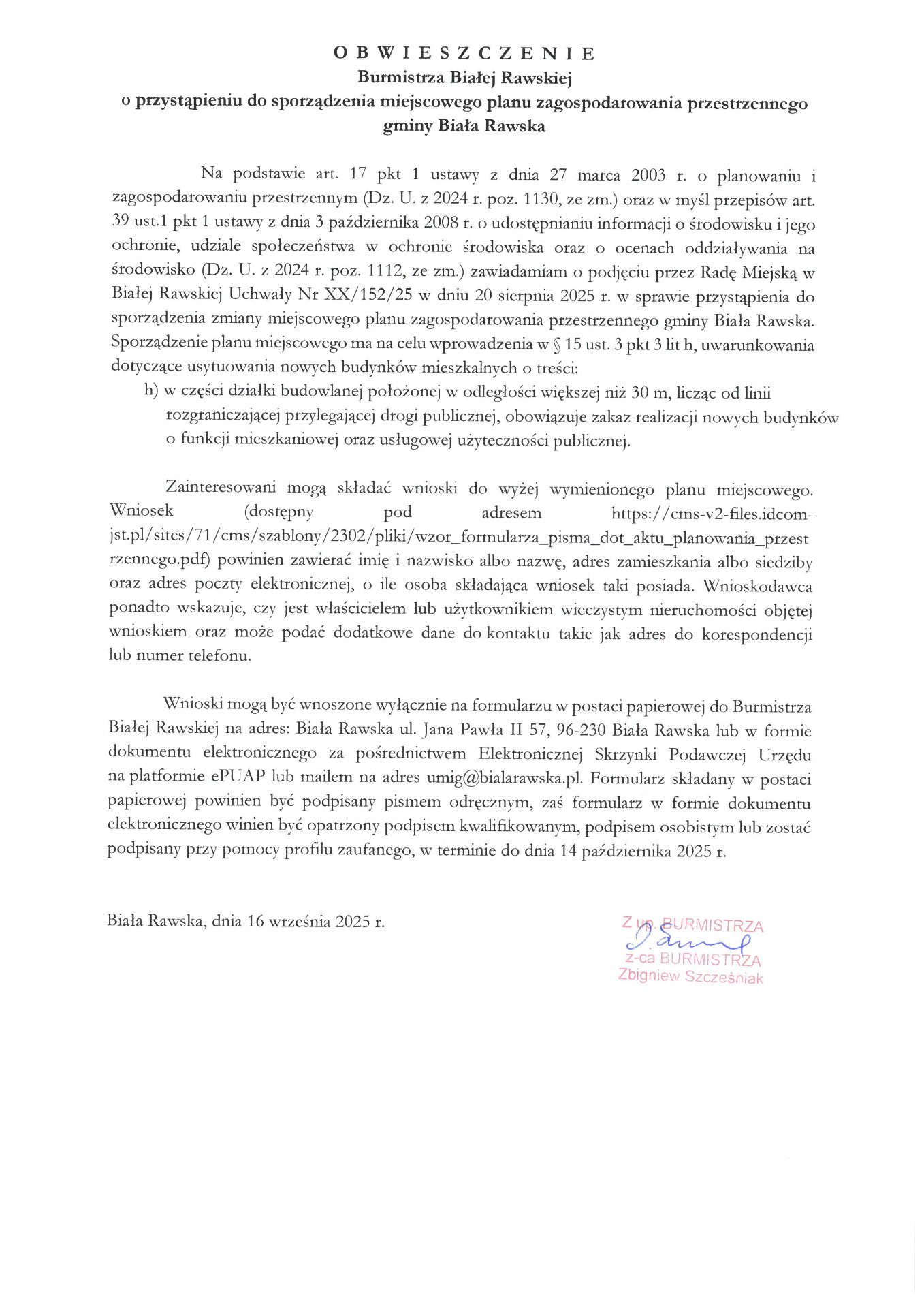 Obwieszczenie Burmistrza Białej Rawskiej o przystąpieniach do...
