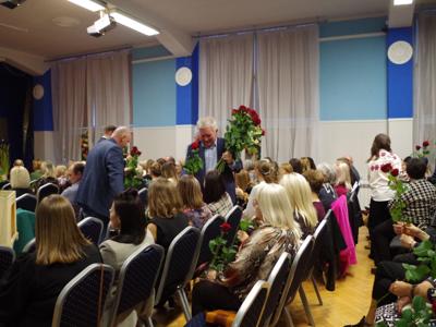 Burmistrz Białej Rawskiej Jacek Otulak spotkał się z nauczycielami, wychowawcami i pracownikami szkół z terenu Gminy Biała Rawska oraz jednostek pełniących zadania związane z opieką nad dziećmi, by uczcić