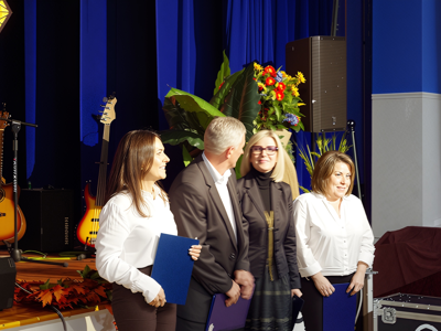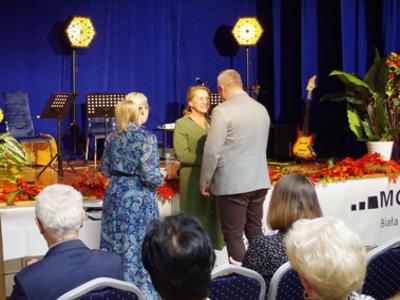 Specjalne wyróżnienie wręczono Pani Ewie Adamczyk – przez wiele lat pełniącej funkcję Inspektora w Wydziale Oświaty, Kultury i Polityki Społecznej. Minister Edukacji Narodowej przyznał Pani Ewie Medal Komisji Edukacji Narodowej za szczególne zasługi dla oświaty i wychowania.
