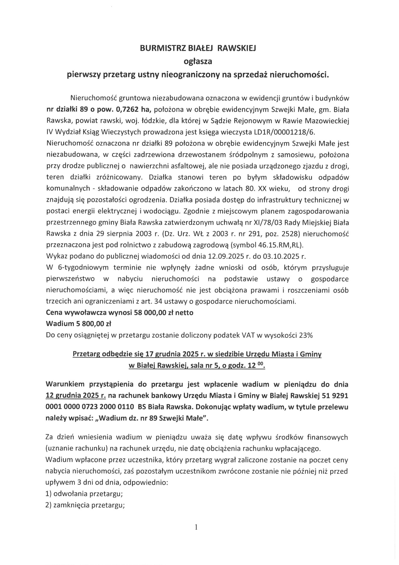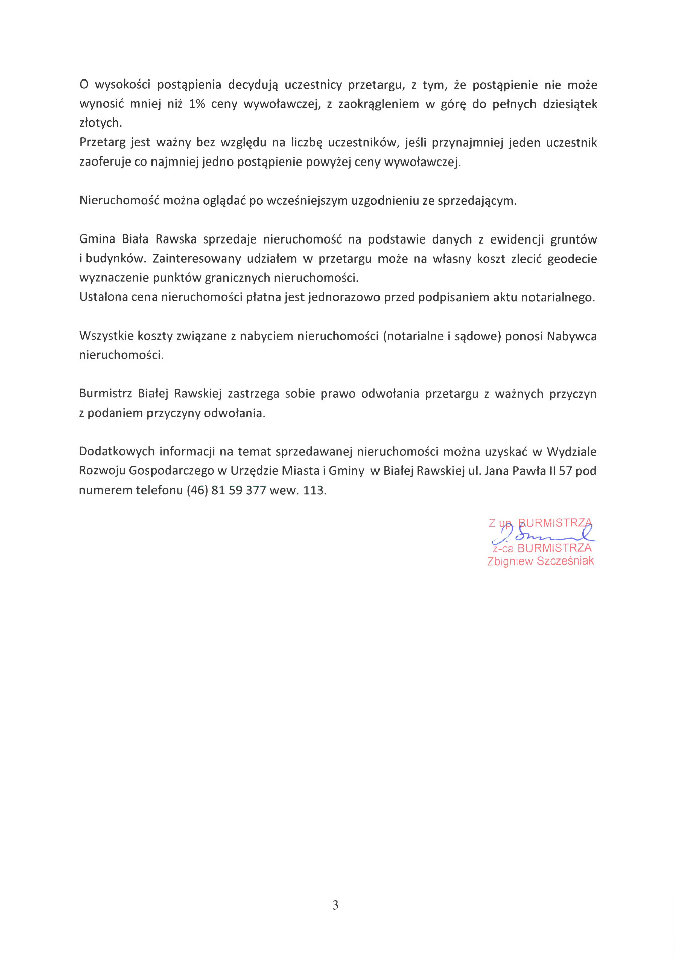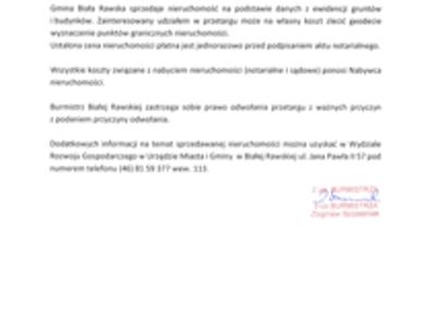 Ogłoszenie Burmistrza Białej Rawskiej o pierwszym przetargu ustnym nieogranicznym na sprzedaż nieruchomości