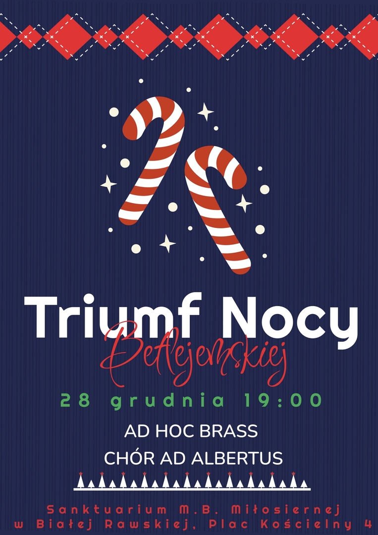 z serdecznym i ciepłym sercem zapraszamy Państwa na koncert pt. „Triumf Nocy Betlejemskiej”, który odbędzie się w Sanktuarium Matki Bożej Miłosiernej w Białej Rawskiej.