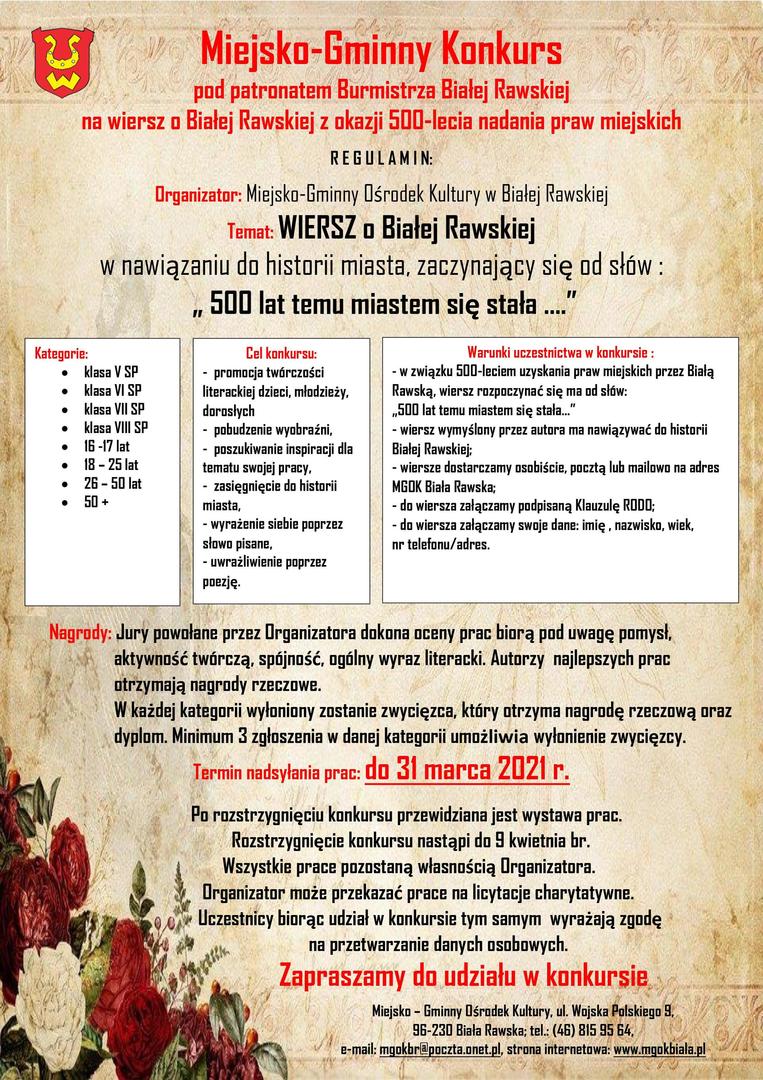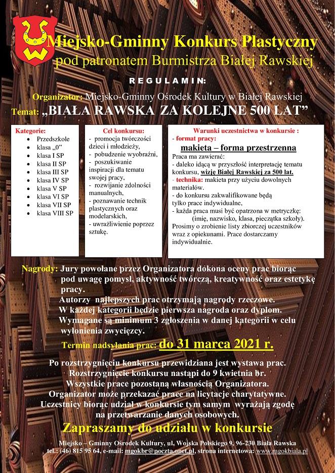 Miejsko-Gminny Ośrodek Kultury w Białej Rawskiej ogłasza konkursy