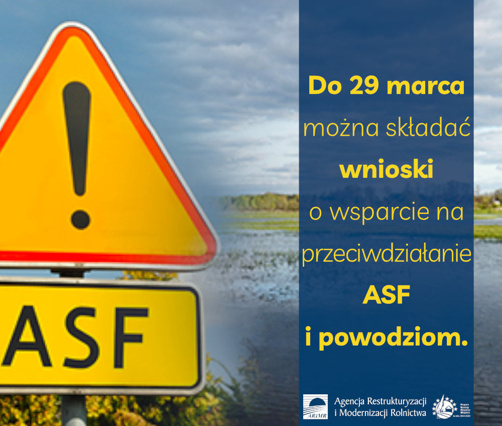 Do 29 marca Agencja Restrukturyzacji i Modernizacji Rolnictwa wydłużyła termin składania wniosków o wsparcie na przeciwdziałanie ASF i powodziom.
