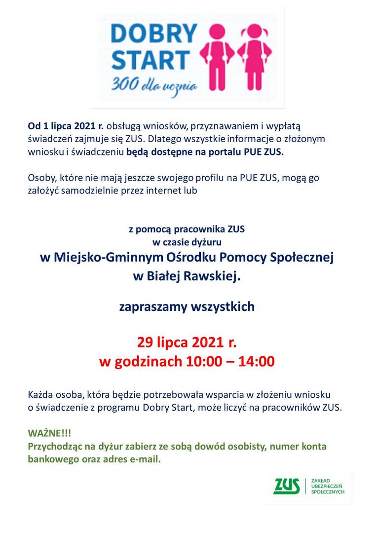 Dyżur pracowników ZUS w MGOPS w Białej Rawskiej