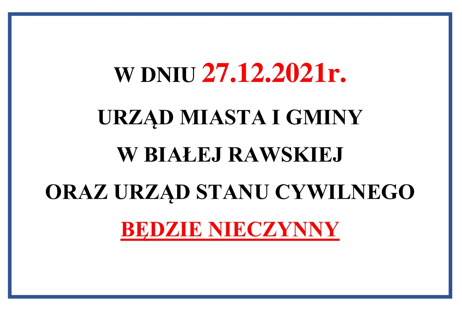 W dniu 27.12.2021 r. Urząd będzie nieczynny