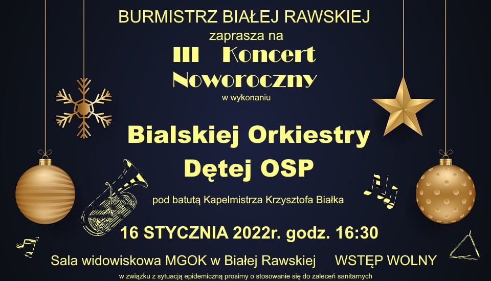 BURMISTRZ BIAŁEJ RAWSKIEJ zaprasza na III KONCERT NOWOROCZNY w wykonaniu Bialskiej Orkiestry Dętej OSP
