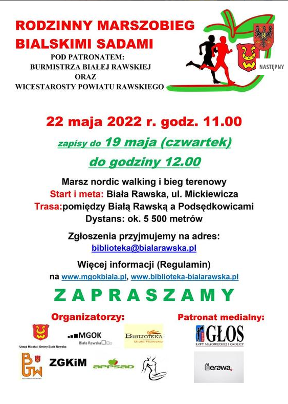 Rodzinny Marszobieg Bialskimi Sadami. Niedziela 22 maja 2022r. godzina 11:00