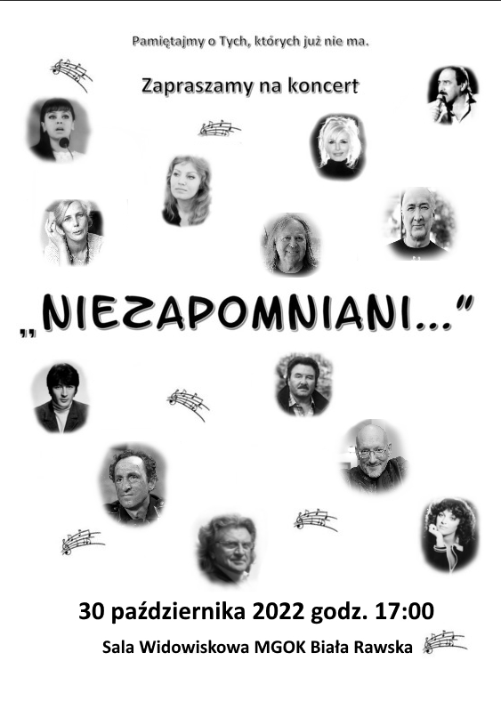 Zapraszamy na koncert "NIEZAPOMNIANI..." 30 października 2022 sala widowiskowa MGOK Biała Rawska.