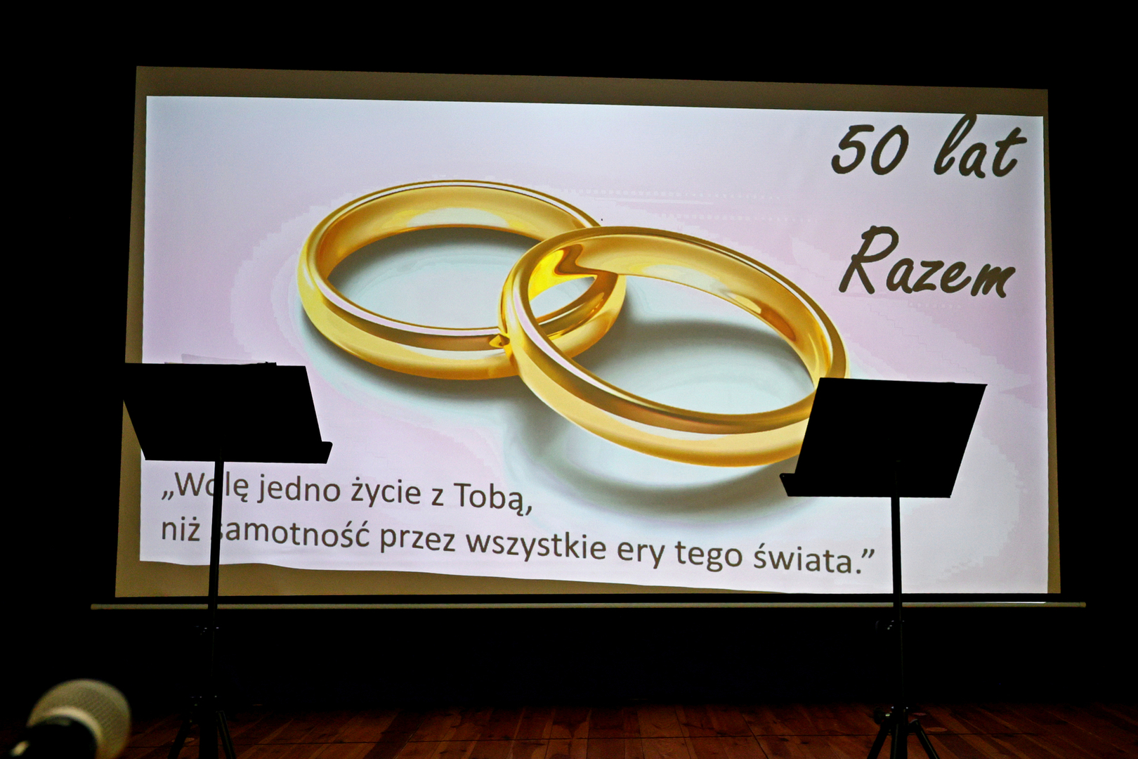 ,,Gratuluję dostojnym jubilatom tej pięknej rocznicy. Wasza obecność w tym miejscu jest dowodem trwałości waszych rodzin. To z kolei jest podstawą szczęścia i poczucia bezpieczeństwa. Nasi jubilaci tworzą najmniejszą, a tak ważną dla gminy komórkę społeczną, jaką jest rodzina. Bez was, bez waszej siły, przekazywania tradycji, trwania i pielęgnowania więzi — nie byłoby rozwoju naszej gminy. Życzę kolejnych lat w zdrowiu i pomyślności” — mówił Zbigniew Szcześniak.
