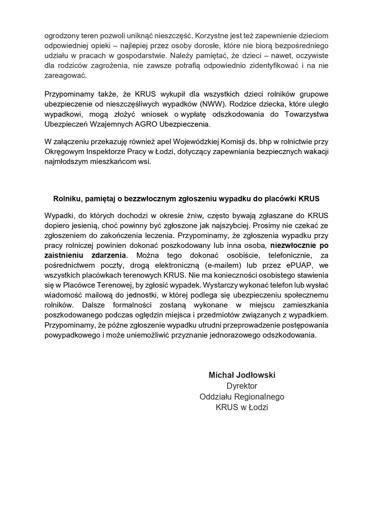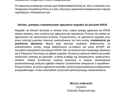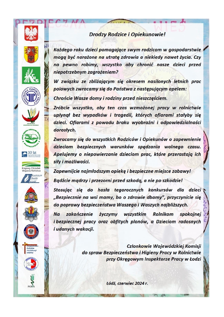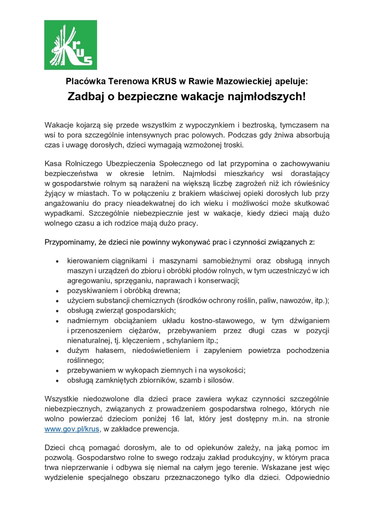 Placówka Terenowa KRUS w Rawie Mazowieckiej apeluje: Zadbaj o bezpieczne wakacje najmłodszych!